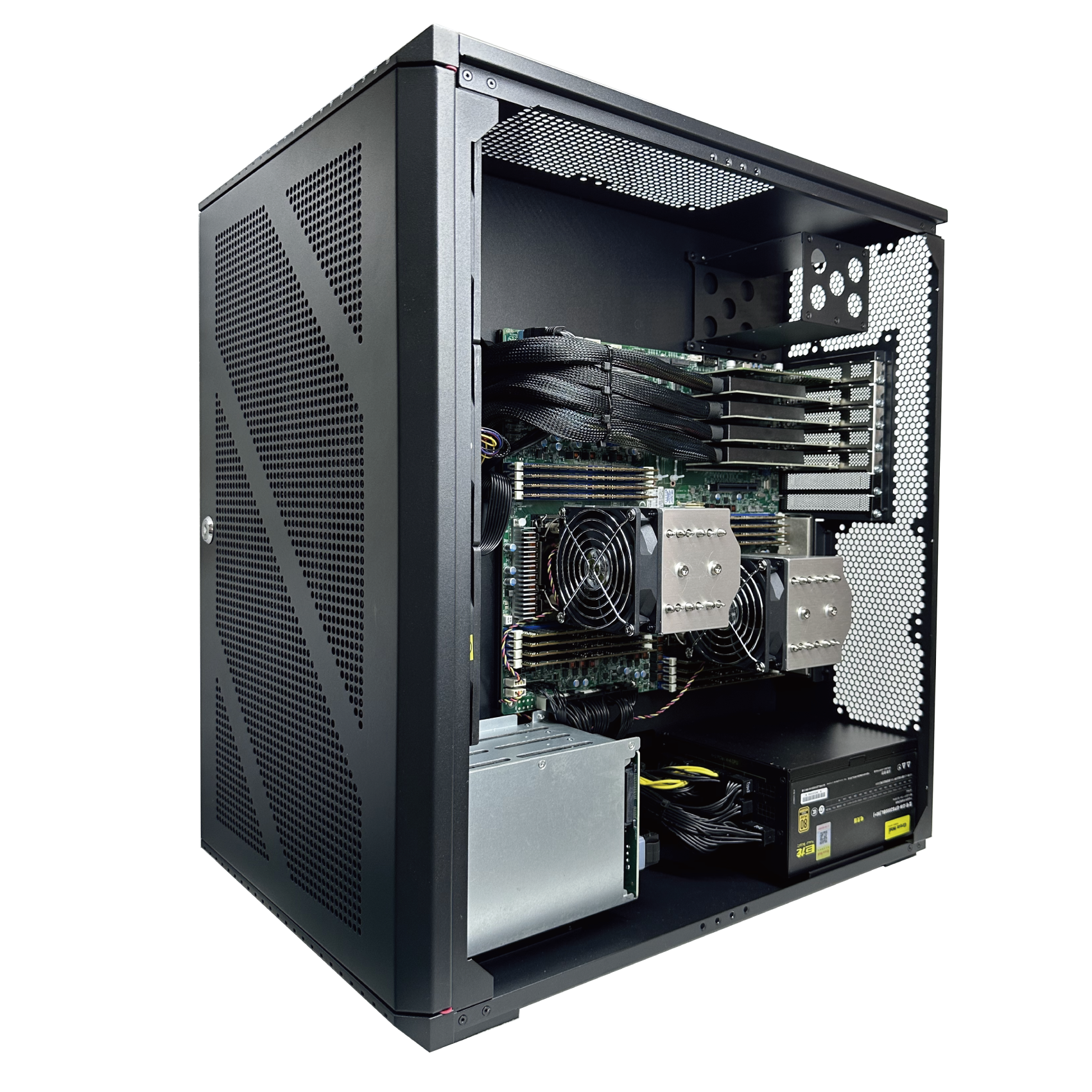 廣州天翱TA-WS04A工作站,定位是HPC及深度學(xué)習(xí)(AI)應(yīng)用平臺(tái)。支持4路3.5寬的顯卡機(jī)型,可有效解決當(dāng)下4090游戲卡的多卡安裝問題,散熱問題。供電方面采用兩個(gè)2000瓦特ATX電源同步供電,整機(jī)功耗可支持4000瓦特。另外整機(jī)采用靜音方式散熱,擺脫噪音困擾,非常適合學(xué)術(shù)研究辦公室跟實(shí)驗(yàn)室等環(huán)境使用。