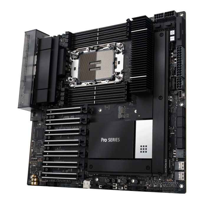 AMD sTR5 EEB 工作站主板, 7 PCIe 5.0 x16 插槽, 支持多 GPU, 強(qiáng)大的 32+3+3+3 供電模組設(shè)計, 支持 CPU 和內(nèi)存超頻, 4 PCIe 5.0 M.2 插槽, 雙 10 Gb LAN, PCIe Q-Release Slim 顯卡易拆裝