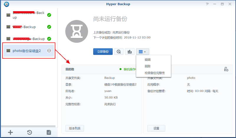 8、如此便完成了將硬盤(pán)1中的photo文件夾備份自硬盤(pán)2的設(shè)置,并且會(huì)定時(shí)備份,只要NAS在開(kāi)機(jī)狀態(tài)中。