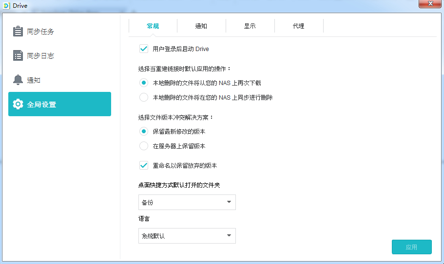 在全局設(shè)置中,您可配置當(dāng)重新鏈接時,從計算機(jī)刪除的文件將從 NAS 被重取還是將在 NAS 上被刪除。