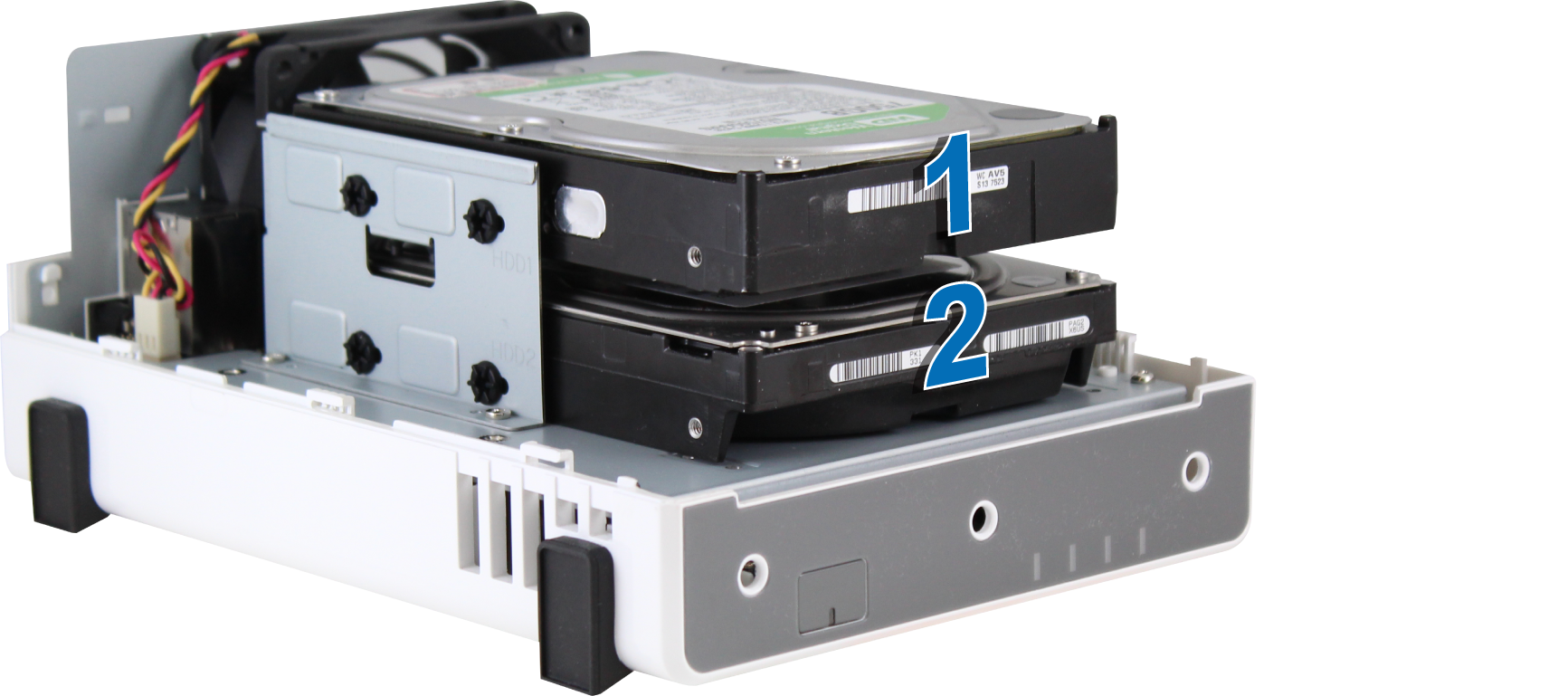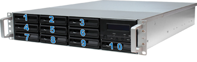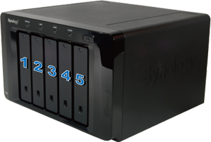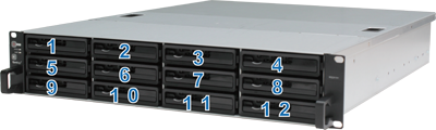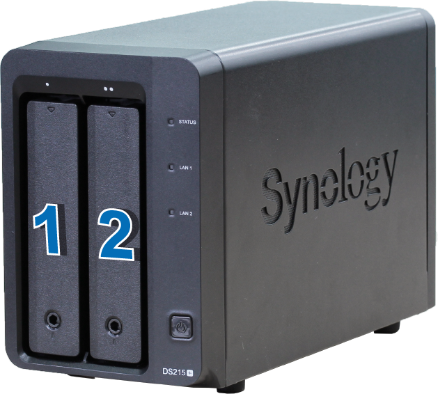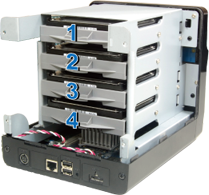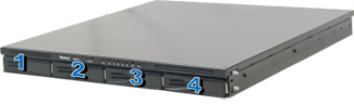 針對(duì) 2 顆或以上硬盤機(jī)種的 Synology NAS,硬盤位置的排序由左至右,或是由上至下。 要找到實(shí)際相應(yīng)硬盤,請(qǐng)參照下圖所示的編號(hào)。
