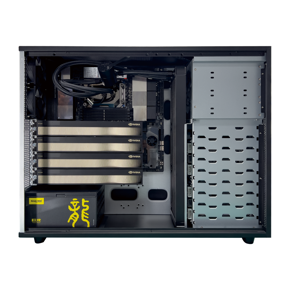 廣州天翱塔式HPC,型號(hào)為TA-W4509,搭配最新第四代Inte!°Xeon”W系列處理器,單機(jī)最高支持56核心112線程。該工作站配備了最新的 NVME 存儲(chǔ)選項(xiàng),PCI-E5.0 上的三個(gè) M.2 用于閃存啟動(dòng)和存儲(chǔ)。同時(shí)可擴(kuò)展4路雙寬GPU運(yùn)算卡,可廣泛應(yīng)用于人工智能/深度學(xué)習(xí),高性能計(jì)算(HPC),云游戲;分子動(dòng)力學(xué)模擬